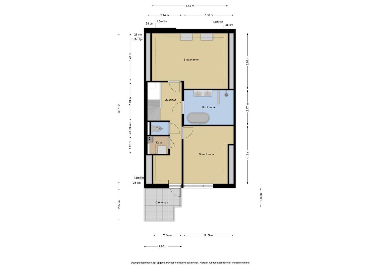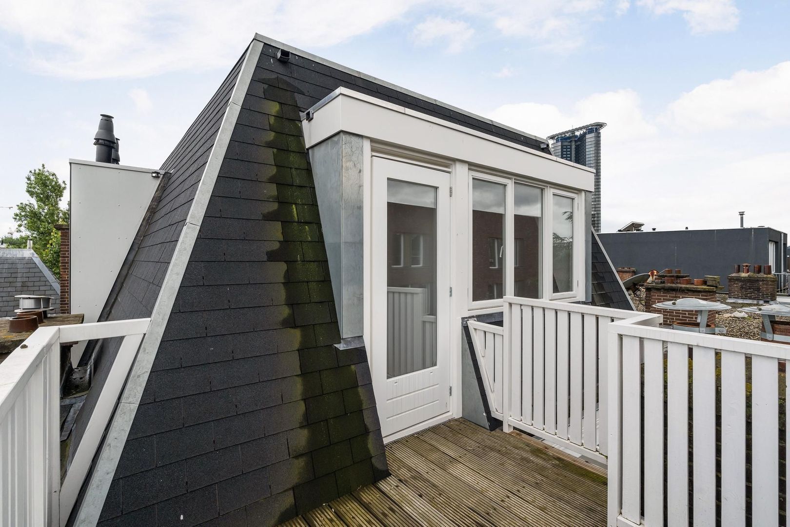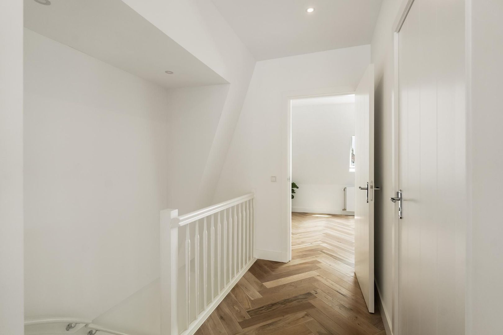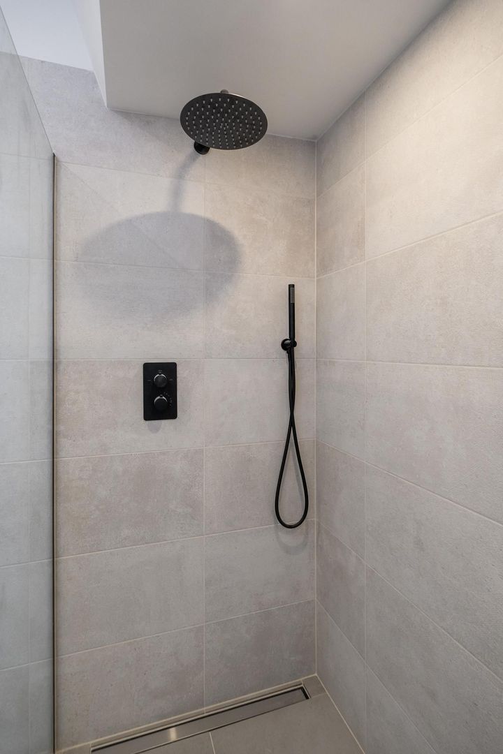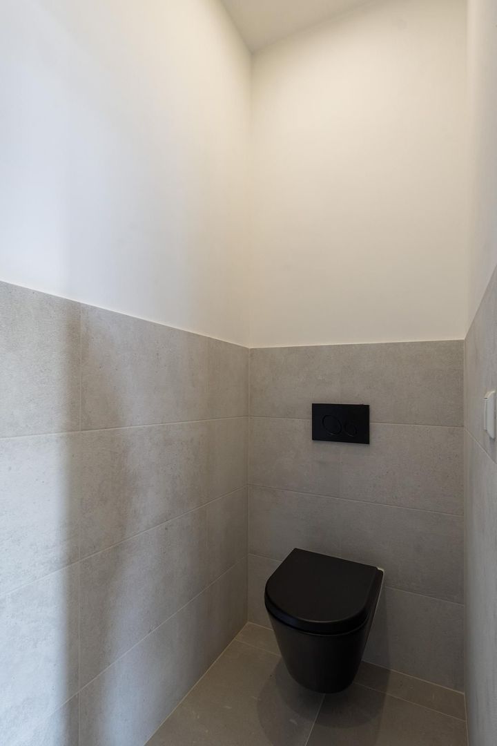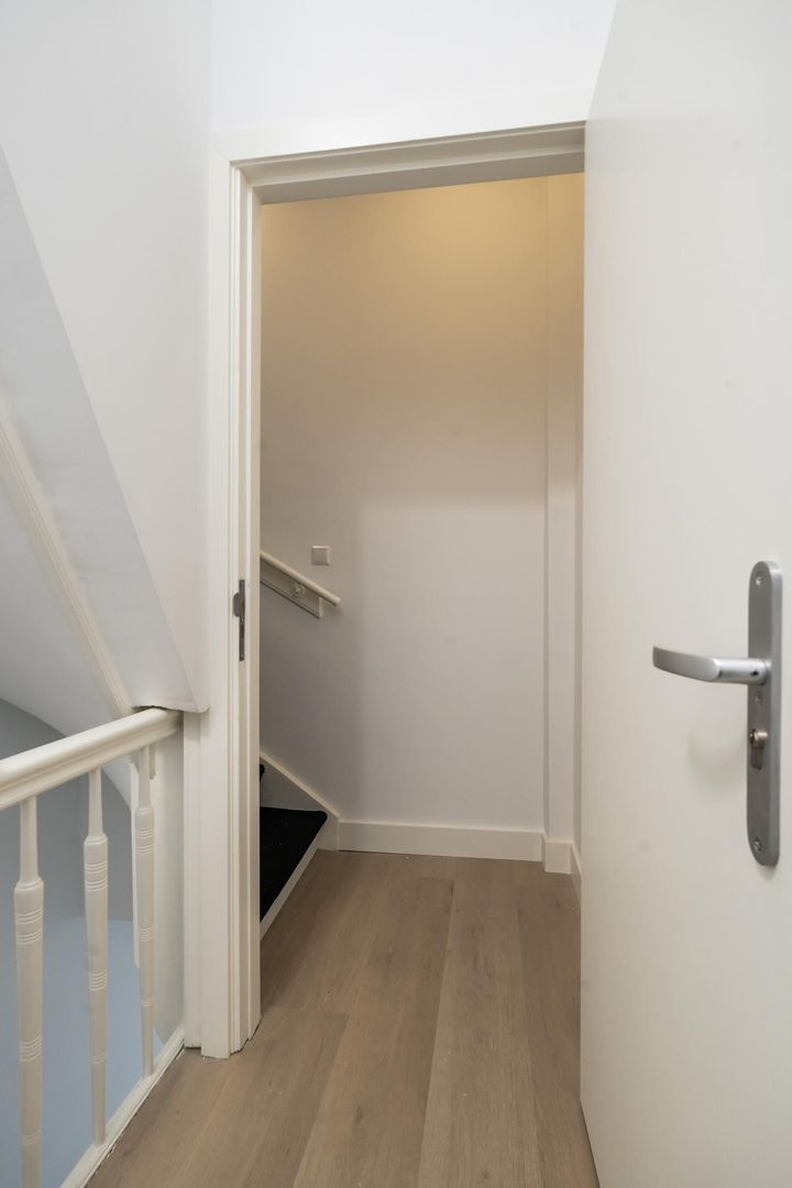 Vanuit de overloop een trap naar de derde etage, overloop met technische ruimte en apart toilet, zijkamer aan de achterzijde met tweede terras, ruime slaapkamer aan de achterzijde en ruime slaapkamer met dakramen aan de voorzijde. De luxe tussengelegen badkamer is voorzien van fraai tegelwerk, vrijstaand ligbad, meubel met ingebouwde kranen, spiegel met verlichting en handdoekradiator.