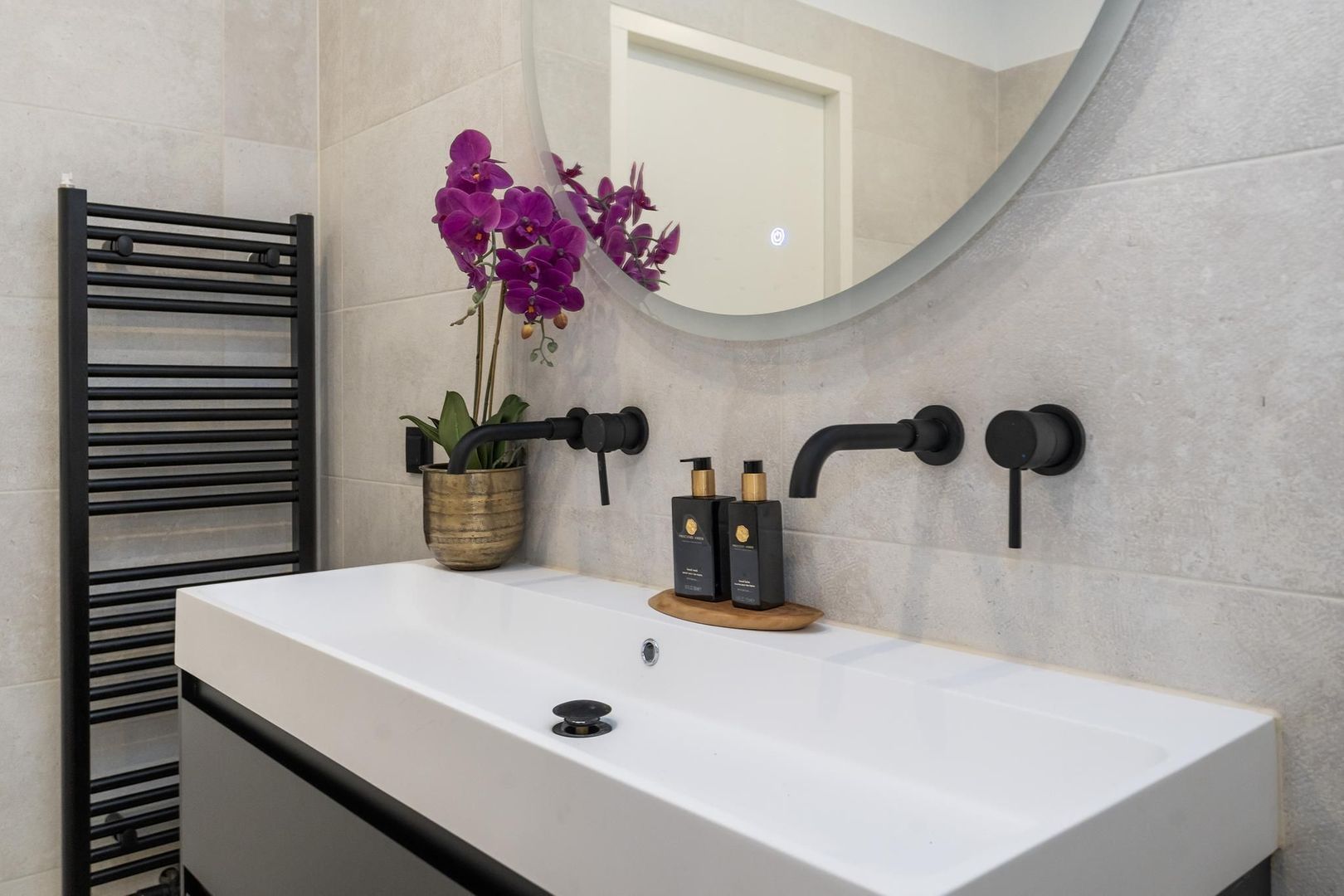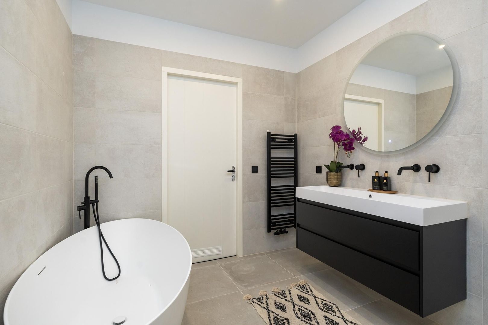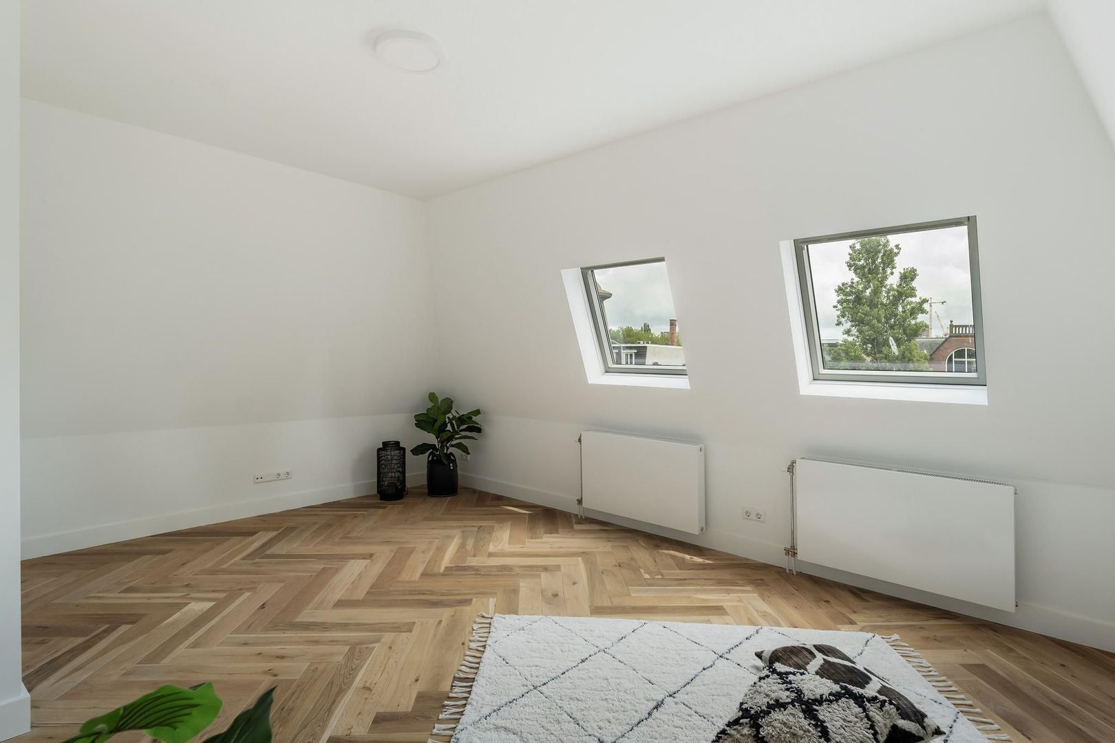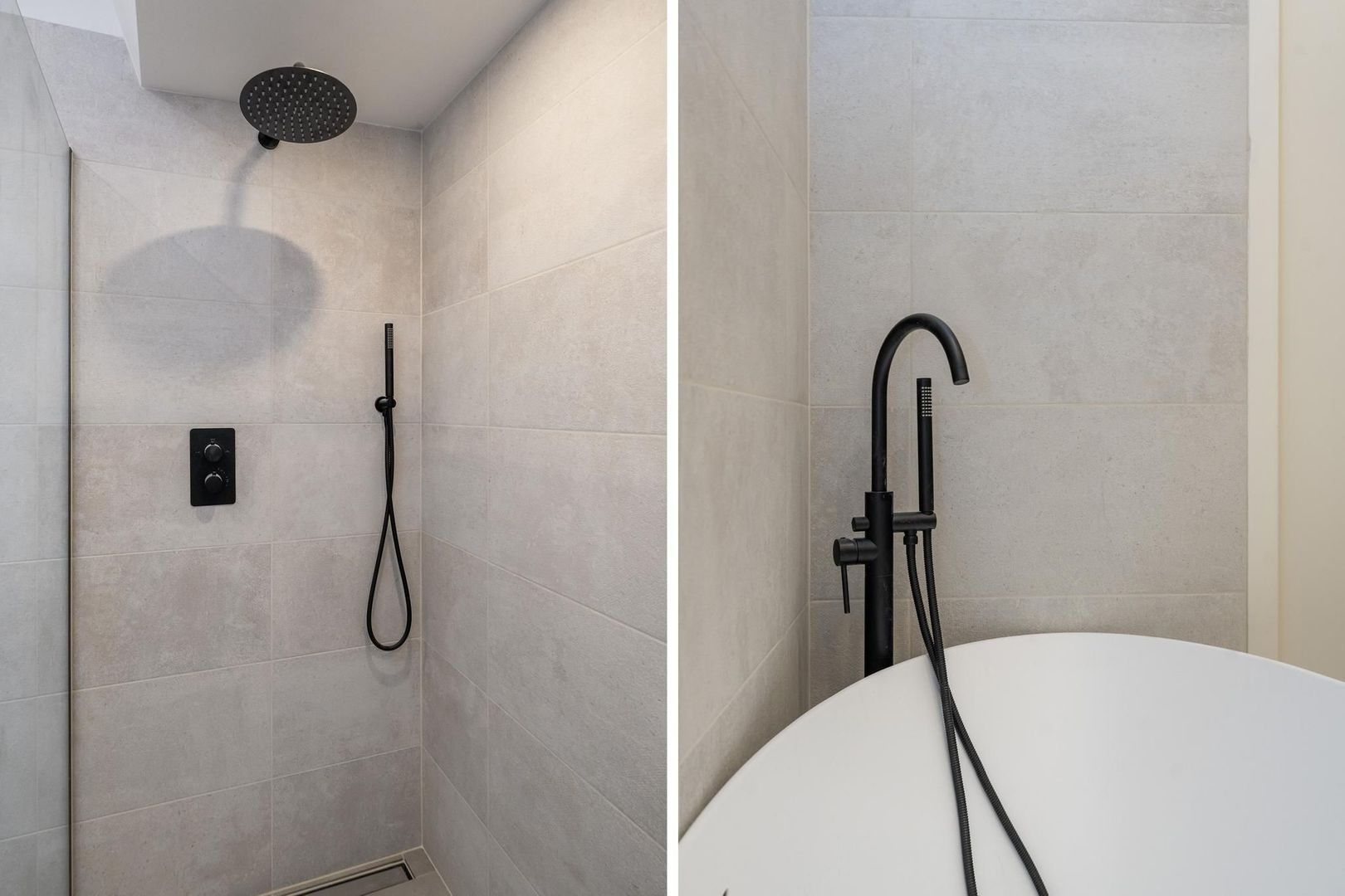 Vanuit de overloop een trap naar de derde etage, overloop met technische ruimte en apart toilet, zijkamer aan de achterzijde met tweede terras, ruime slaapkamer aan de achterzijde en ruime slaapkamer met dakramen aan de voorzijde. De luxe tussengelegen badkamer is voorzien van fraai tegelwerk, vrijstaand ligbad, meubel met ingebouwde kranen, spiegel met verlichting en handdoekradiator.